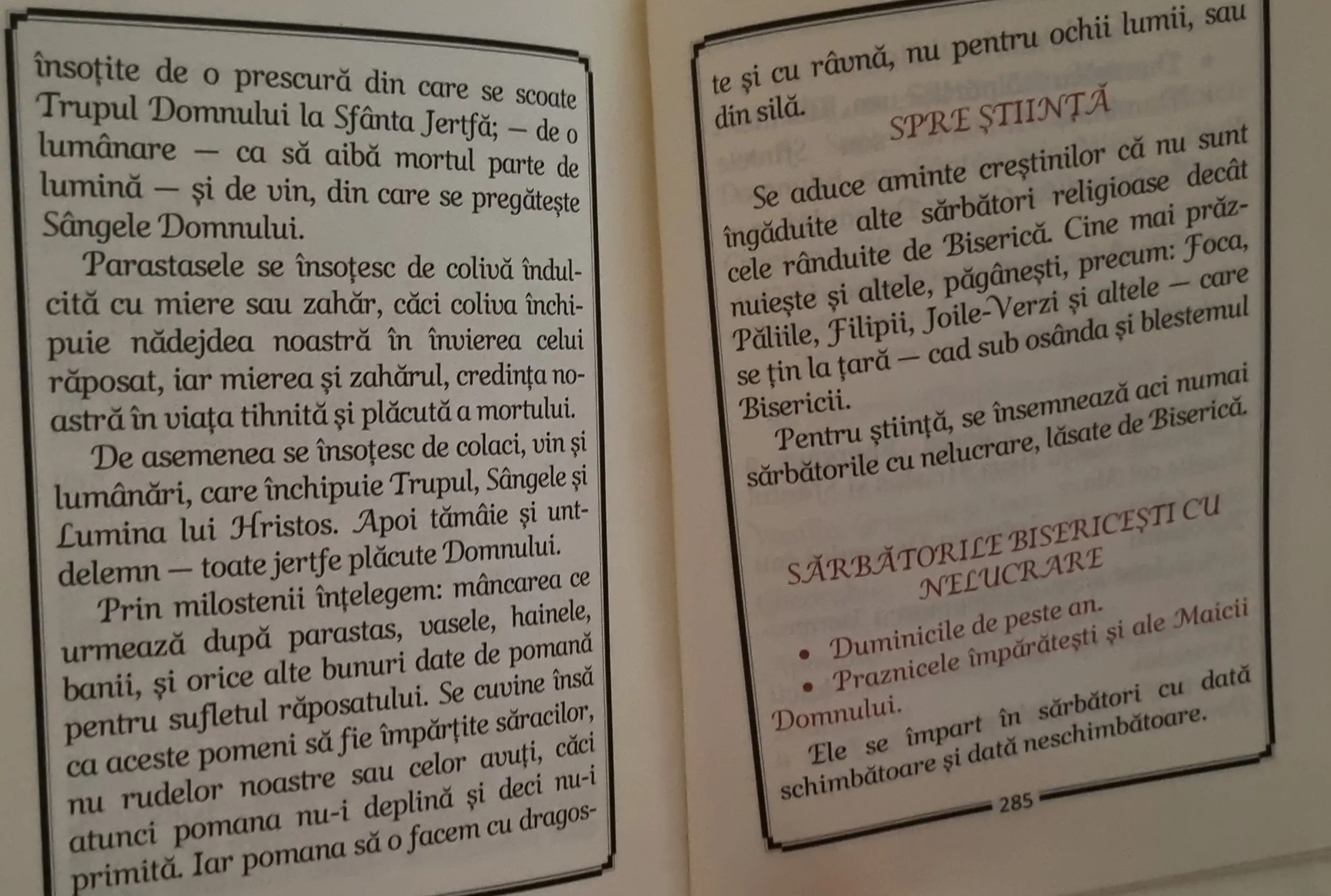 Sigur după slujbă se găsesc și în biserică oameni care să se „bucure” de aceste daruri, dar este o cu totul altă bucurie și adesea devine doar un schimb de colive, vinuri, sau alte „daruri„!