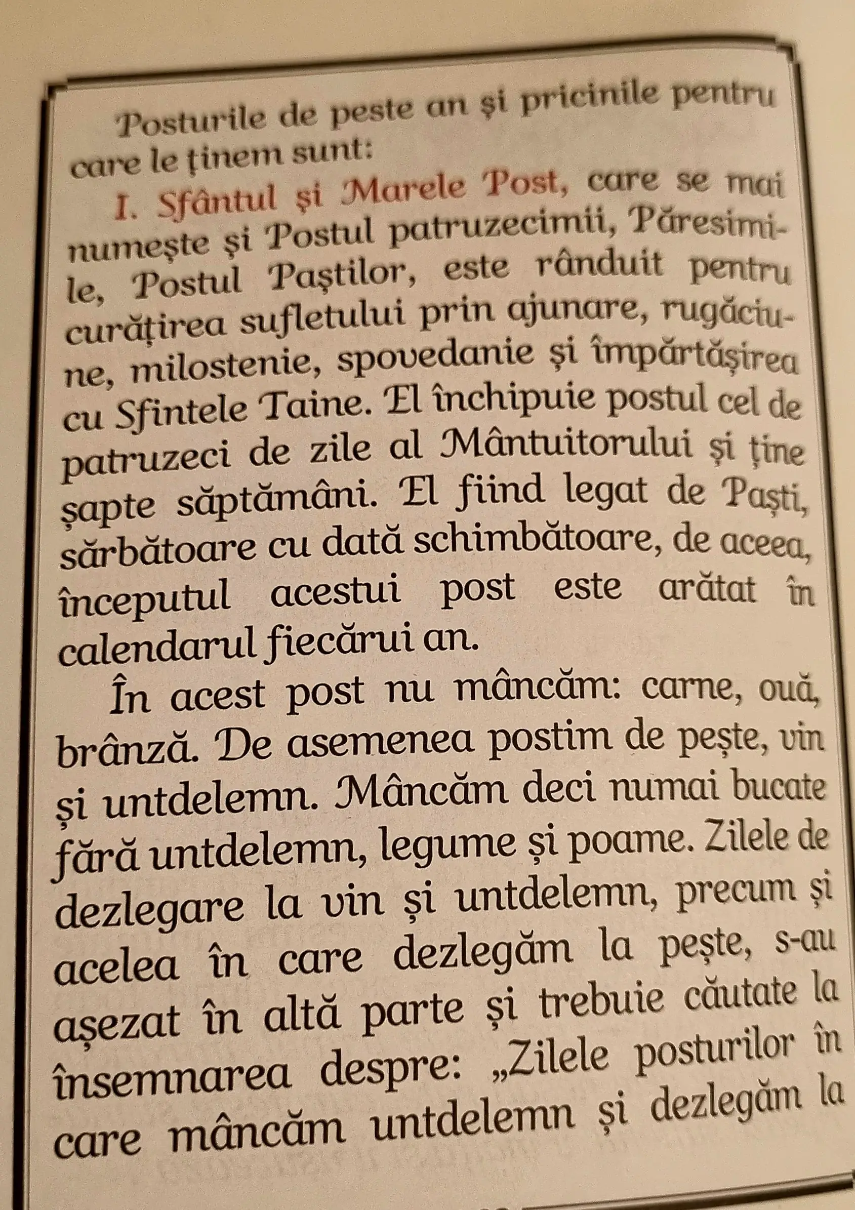 specificate în calendarele ortodoxe, pe care fiecare creștin le consultă oricum zilnic! „Dezlegare „nu înseamnă însă „obligare” nici la ulei, nici la vin și cu atât mai puțin la pește, lucru care pe mine cel puțin în privința peștelui, chiar mă bucură!